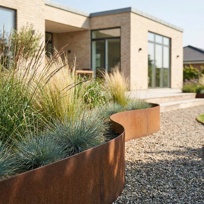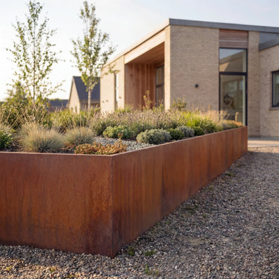 Verschönern Sie Ihren Garten mit Beeteinfassungen und Rasenkanten aus Cortenstahl oder Eisen. Erhältlich in verschiedenen Höhen und Längen, passend für Ihren Bedarf.
