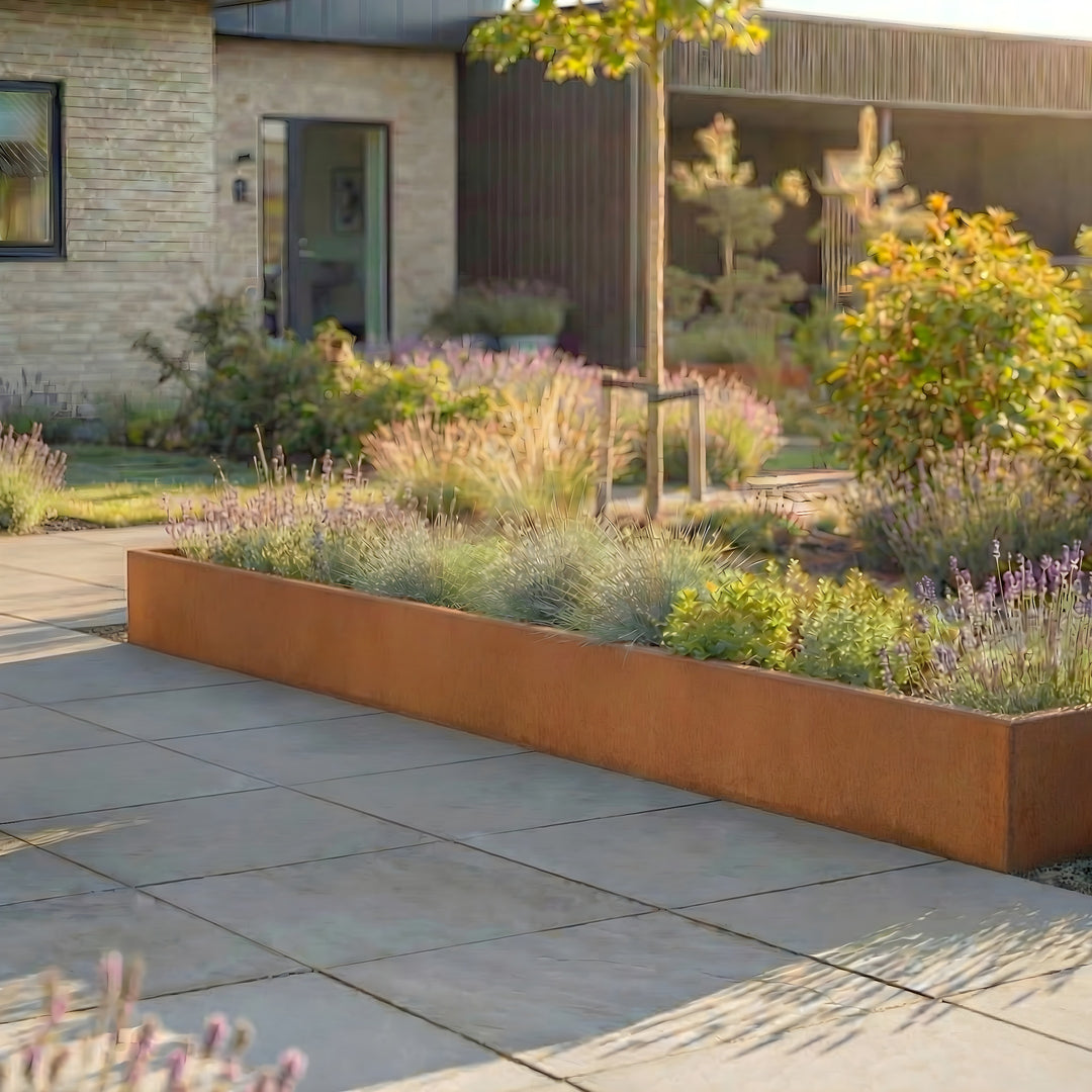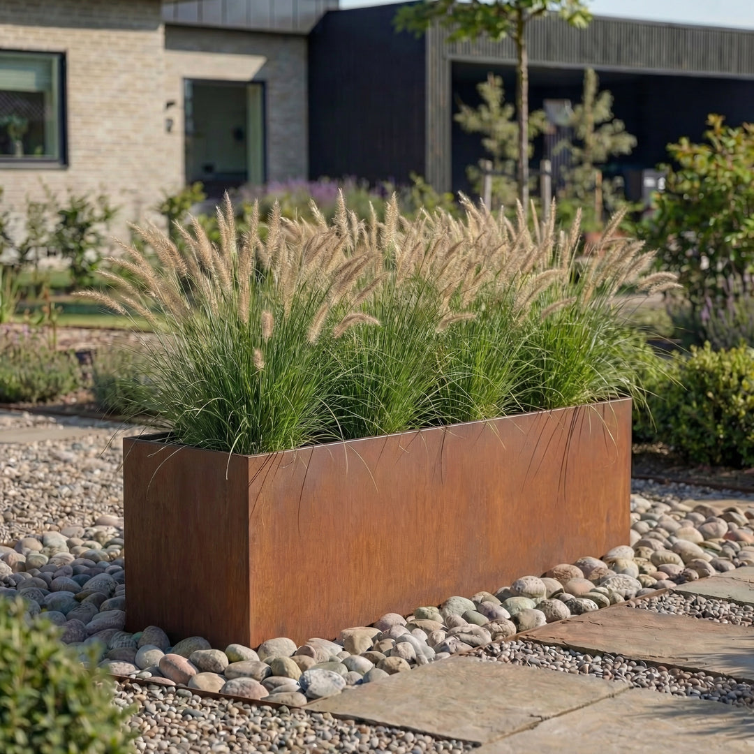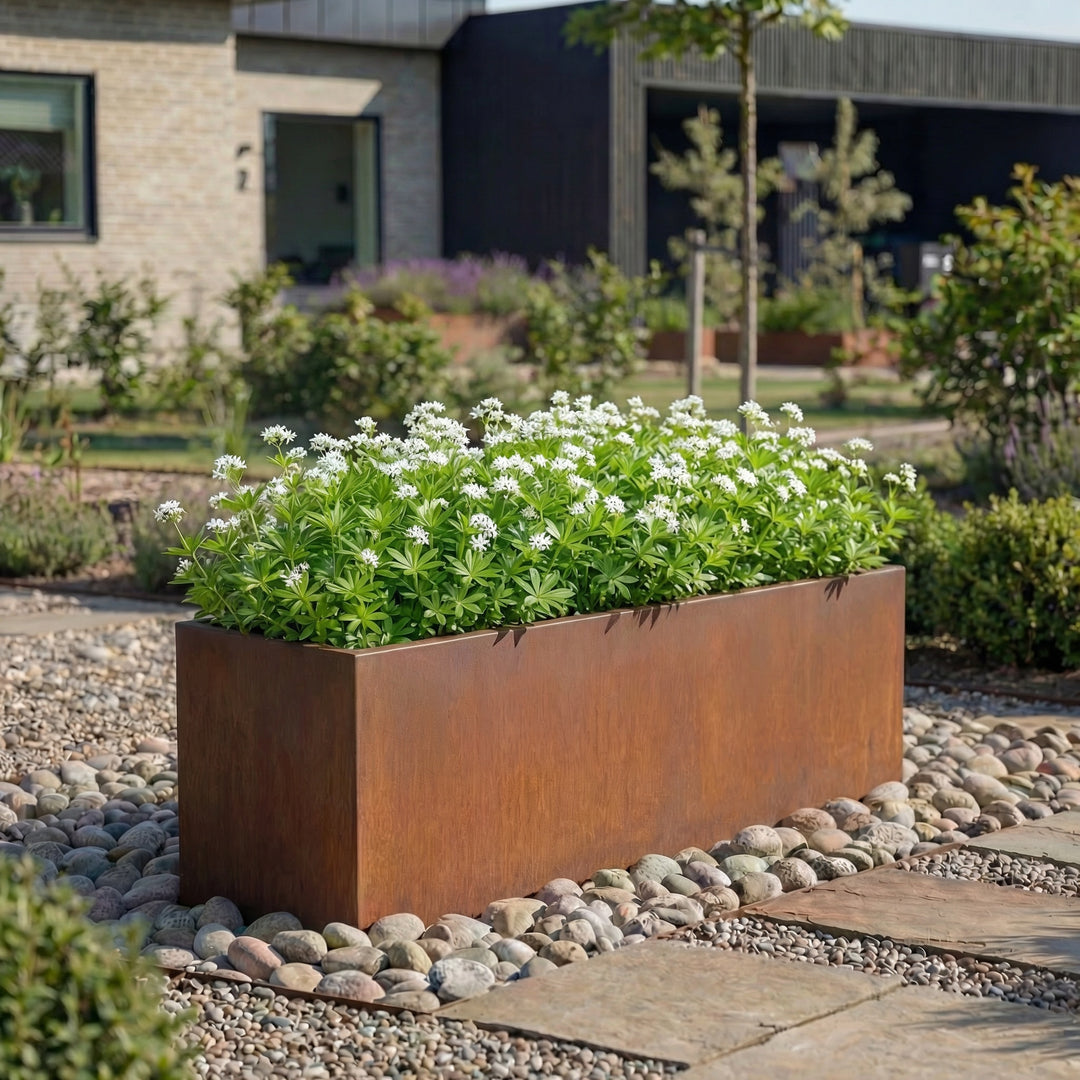 Die Blumenkästen von Der Stahlgarten sind vielseitig einsetzbar. Die größeren Modelle mit 150 cm Länge eignen sich hervorragend, um als Raumteiler oder Sichtschutz auf Terrassen und in Gärten verwendet zu werden. Sie bieten genug Platz für die Kultivierung von kleinen Bäumchen oder einer Vielzahl von Blumen und Kräutern. Die 100 cm langen Kästen sind besonders für Balkone und kleinere Terrassen geeignet. Sie können leicht an Geländer angebracht oder auf dem Boden platziert werden, um eine natürliche, grüne Umgebung zu schaffen. Dank ihrer robusten Bauweise können Sie unsere Blumenkästen sowohl im Innen- als auch im Außenbereich einsetzen.