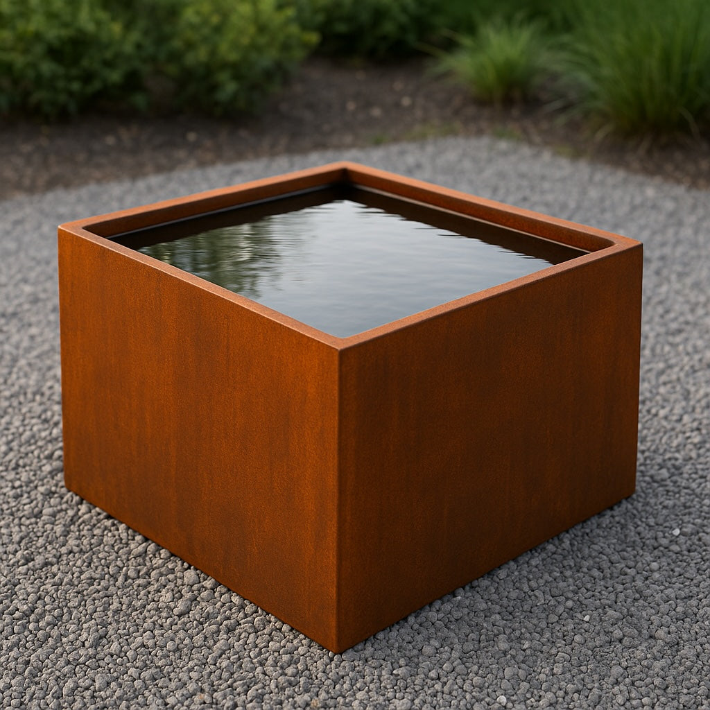 Maßgeschneiderte Bestellung: Hohes Wasserbecken aus Cortenstahl