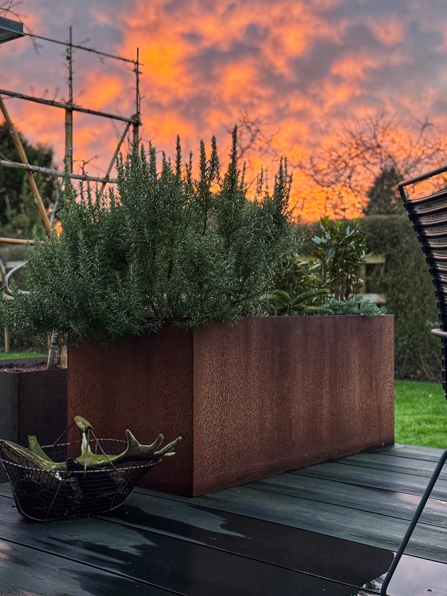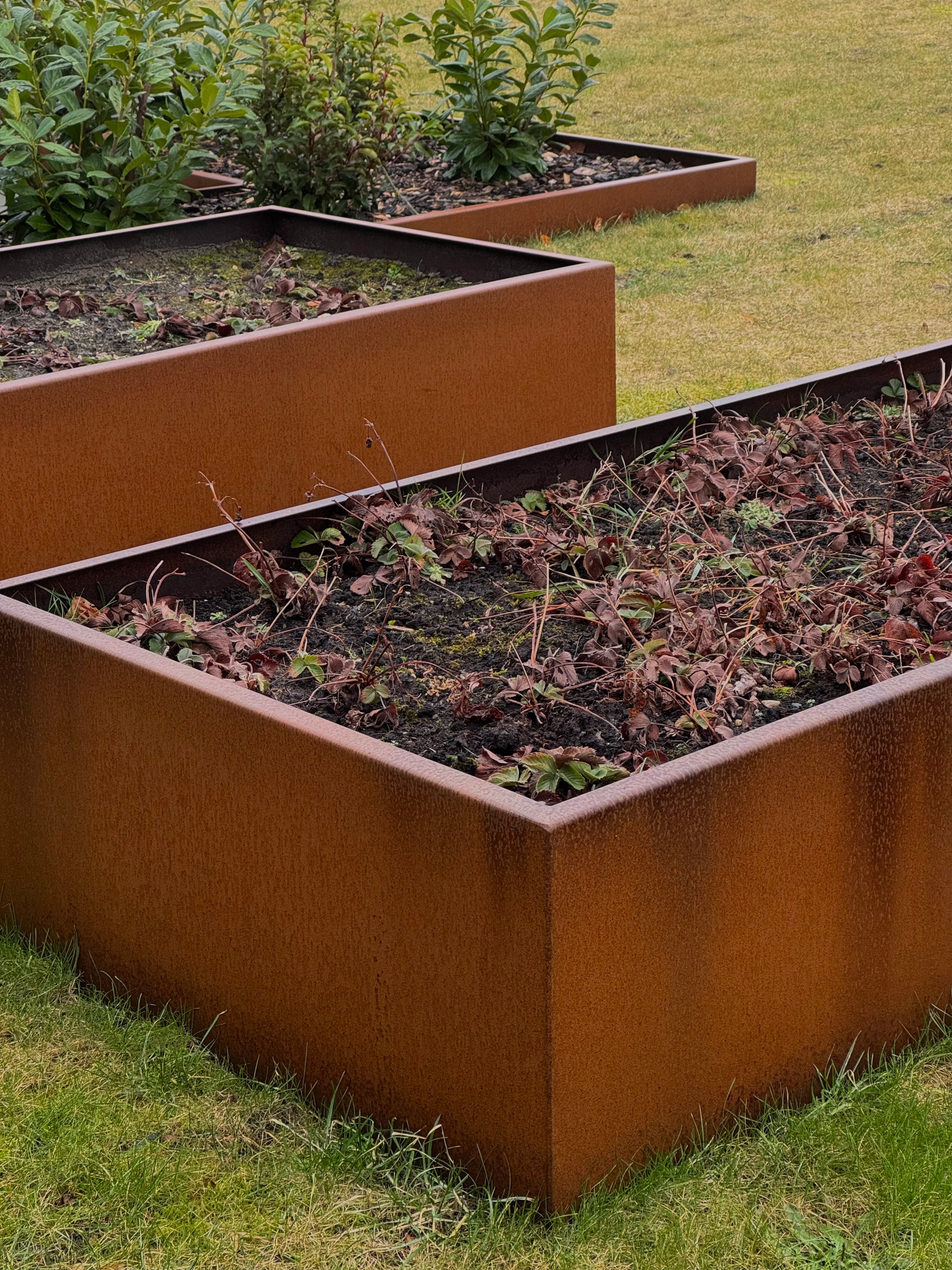 Gestalten Sie einen schönen und funktionalen Garten mit unseren langlebigen Hochbeeten aus Cortenstahl. Perfekt für Gemüse, Blumen und Kräuter.