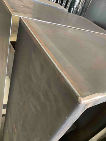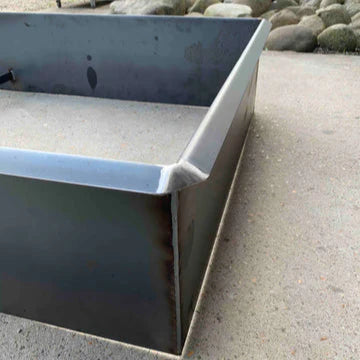 Alle Hochbeete haben vollgeschweißte Ecken, was eine robuste und langlebige Struktur garantiert. Unsere Hochbeete werden von unseren erfahrenen Schmieden von Hand geschweißt. Wenn Sie ein Hochbeet mit Boden bestellen, wird der Boden niemals vollständig geschweißt, um sicherzustellen, dass Wasser abfließen kann. Wir bohren außerdem auch Drainagelöcher. Das Bild zeigt ein Beispiel für eine Vollschweißnaht – die Schweißnaht wird schwieriger zu erkennen sein, wenn das Hochbeet rostet.