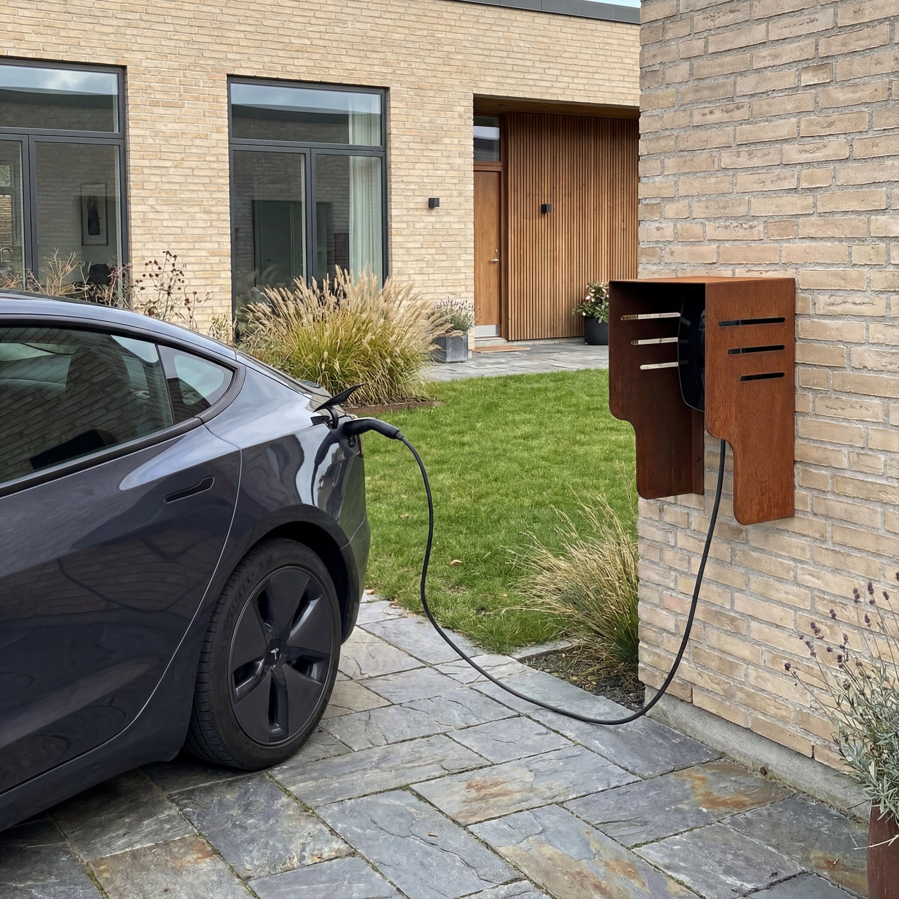 Wallbox-Wetterschutz in rustikalem Cortenstahl